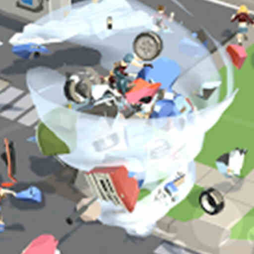 3、玩家需操控龙卷风进行移动,通过吸收小型物体来逐步成长,最终将更大的建筑与地形吞噬。