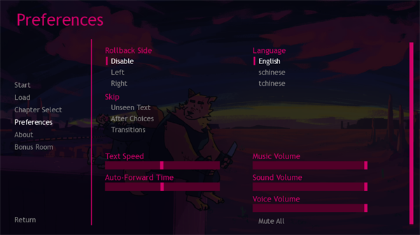 1、打开游戏,我们会发现是纯英文名界面,不用担心,我们点击preferences按钮。