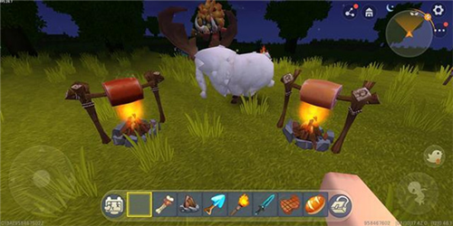 这时候附近的野人闻到烤肉的香味就会过来,被烤肉香味吸引过来的野人会在篝火前面跳舞狂欢。