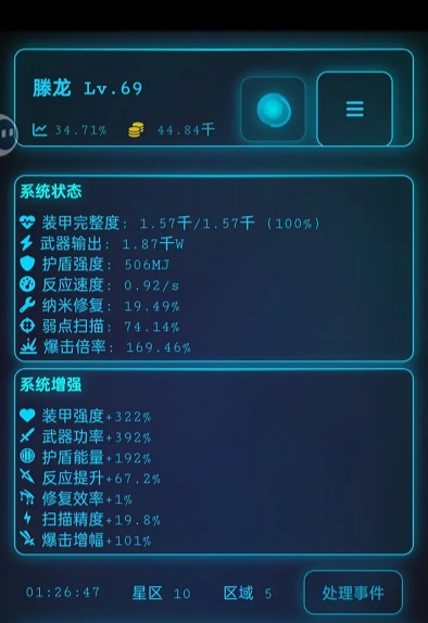 2.打到图片所示情况,就会进入下一个星区,这时怪物等级会提高五级,得有打下新地图的实力再去挑战