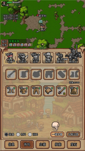 像素冒险村版是游戏的本,在该版本中为玩家去除了广告,玩家可以不看广告直接获得奖励。这是一款怀旧像素风的RPG冒险游戏,在这里扮演一名年轻的冒险者,在这个广阔的像素世界中自由探索、接取任务。去组建一支强大的冒险小队,挑战各种强大的敌人和迷宫,在冒险过程中不断变强,重温儿时的冒险梦。