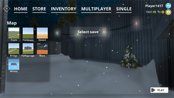 1进入游戏后,屏幕上从左到右排列着五个选项,它们分别是:主页(home)、商店(store)、仓库(inventory)、多人游戏(multiplayer)和单人游戏(single) 。