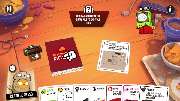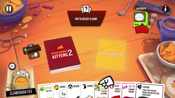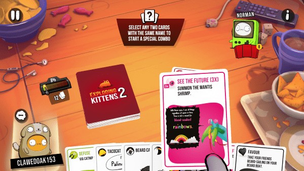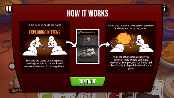 2、持续避开形形色色的爆炸小猫卡牌,奋力存活至最后。