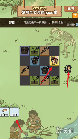 8、当文明步入新阶段,便能解锁【狩猎】技能,用以应对野兽。