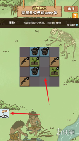 5、远古时期,玩家自身携带【播种】技能。长按技能图标,拖动至空地格,就能使用此技能。