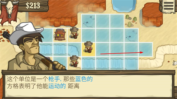 2、对枪手等单位进行操控,蓝色方格所表示的是单位能够移动的距离,你可以依据方格的范围来移动单位,并将其部署在恰当的位置。