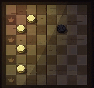 ●每回合中,玩家仅能使一个黄色棋子移动一格,与此同时,黑色棋子每回合同样移动一格。