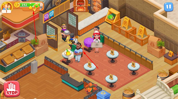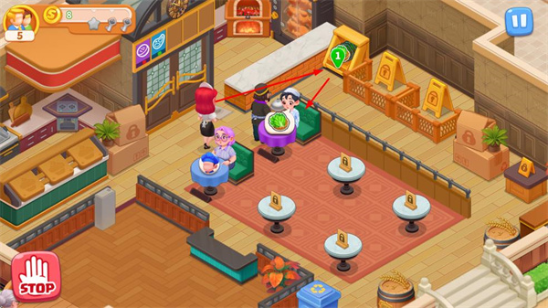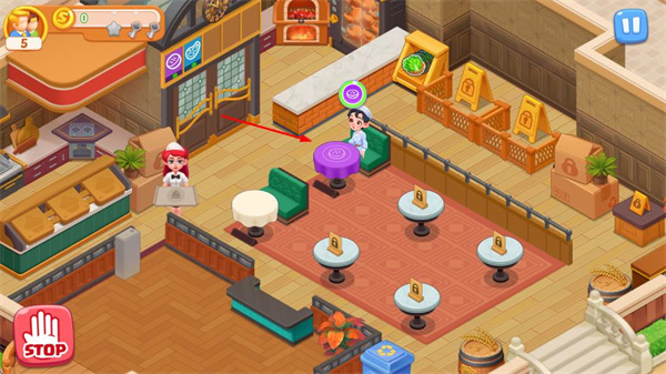 1在游戏中,玩家负责经营一家餐厅。当有顾客走进餐厅时,玩家需要操控服务员,引导顾客前往空桌,使顾客能够顺利就座。