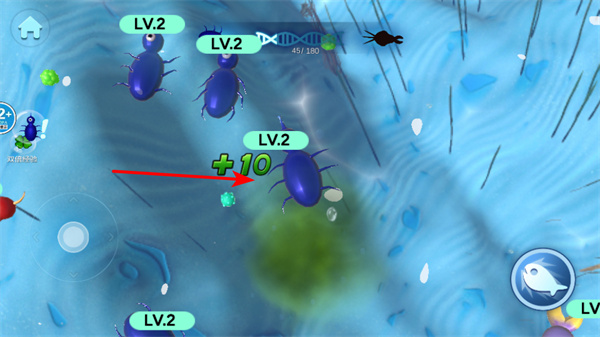 3、收集场景中的绿色颗粒,通过捕食这些绿色颗粒,可获取额外资源,从而加速升级进程。