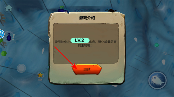 1. 点击“继续”,进入游戏介绍之后的操作阶段,持续推进虫子进化的冒险历程。