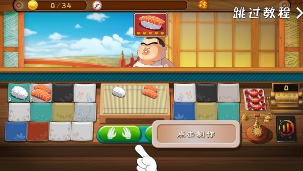 2、初次游玩时,我们能够依照教程来学习这款游戏的玩法。在经营这家寿司店的过程中,顾客是最为关键的。留意顾客所需的食物种类,及时制作并提供给他们。