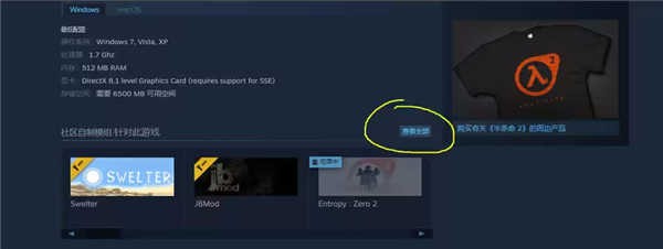在《半条命2》的商店界面往下滑动,就能看到“社区自制模组”,点击右上角的“查看全部”选项,就可以找到Steam平台上所有已上架的免费《半条命2》模组。若你已将《半条命2》三部曲添加到游戏库中,那么这些模组都能直接添加进你的库内。