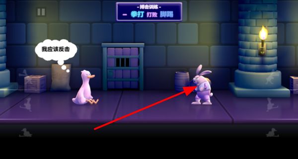2、当遭遇敌人兔子时,操控鸭鸭展开反击,运用拳打脚踢等手段将敌人击败,从而完成搏击训练。