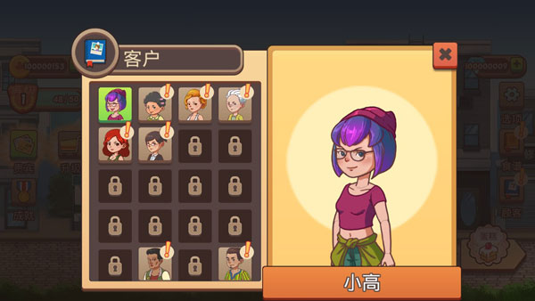 在主界面点击【顾客】按钮,就能查看已解锁以及待解锁的顾客。