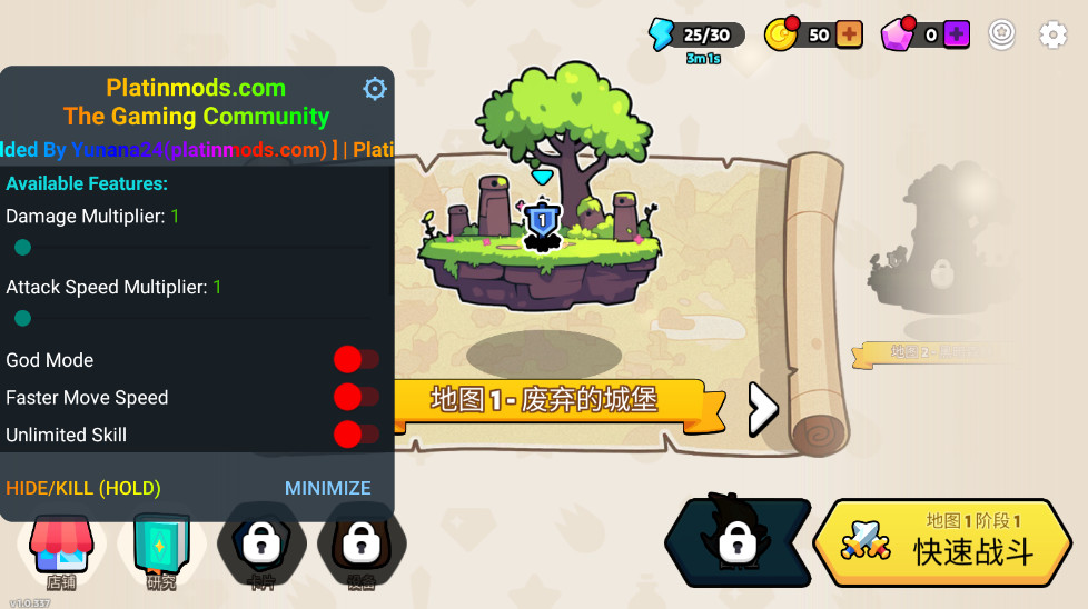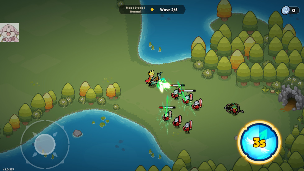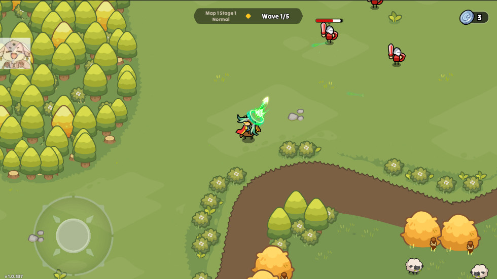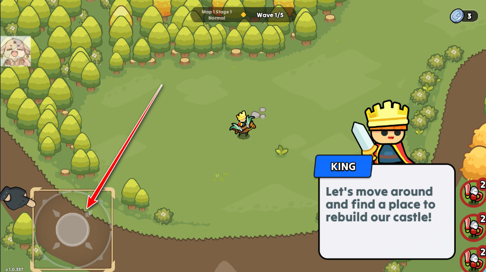 1、于本站安装并启动《夜幕王国边境塔防》,左下角的虚拟摇杆能够操控角色移动。
