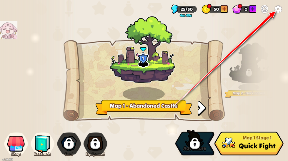 1若要调整为中文,需先完成新手教程,之后在主界面点击右上角的齿轮图标,进入设置。