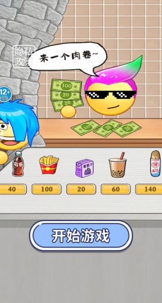 1、当你进入游戏,会瞧见2位杀马特顾客想要吃肉卷,此时点击开始游戏。