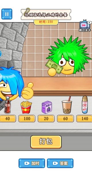 2、在关卡逐步推进的过程中,顾客数量会慢慢增多,同一时刻需要处理多份订单,这对多任务并行处理能力以及优先级排序能力是一种考验。
