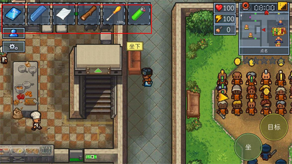 4、于界面上方查看已获取的道具,这些道具能够用于制作工具或者实施逃脱计划。