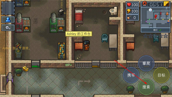 3、于监狱场景里,点击搜索按键,获取制作工具所需的材料物品。
