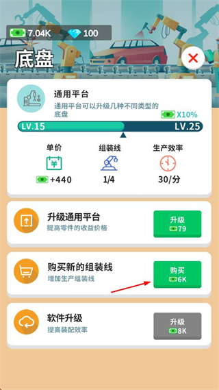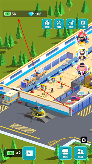 3、画面会呈现出工厂的整体场景,其中包含车辆、工人等元素。玩家通过经营工厂,能够积累货币与钻石这两种资源,这些资源可用于工厂的建设以及升级。