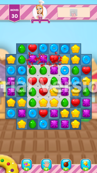 2、让三颗及三颗以上颜色相同的糖果,在横向或者纵向形成一条直线,达成消除操作并获得分数。