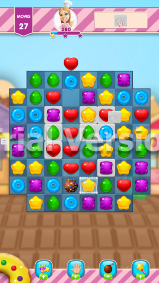 2、若因某一步操作出现失误,致使剩余步数变得紧张,此时可选择使用撤销道具来恢复至上一步操作,也能够使用重排道具对糖果分布进行重组,从而寻觅新的消除机会。