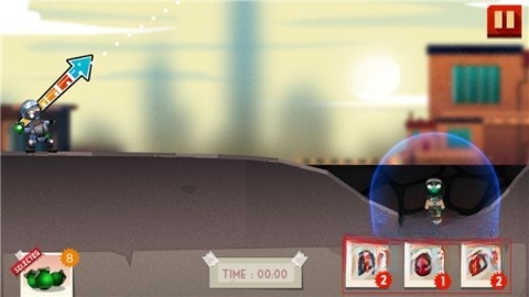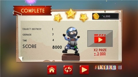3、借助投掷手雷的方式打败敌人,从而顺利通关。巧妙灵活地运用投掷技巧,以获取更高分数与丰厚奖励。
