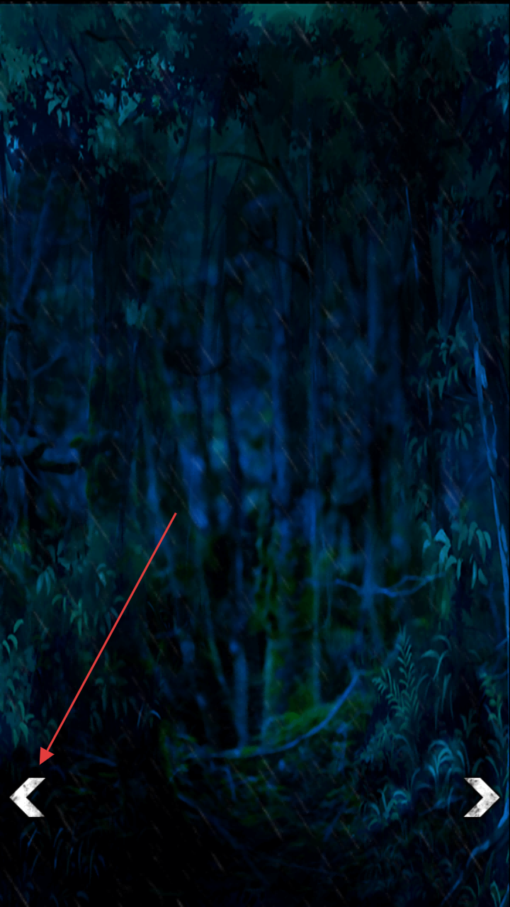2. 在夜间的森林里,点击左侧箭头对新区域展开探索,进而触发事件。
