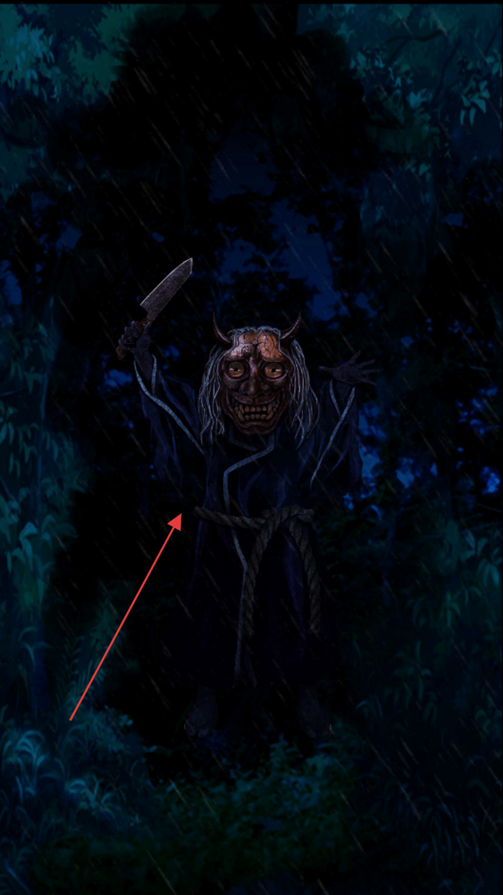 3、若遭遇手持利刃的鬼怪,点击箭头所指位置,可尝试与之互动或进行躲避,随后继续流程。