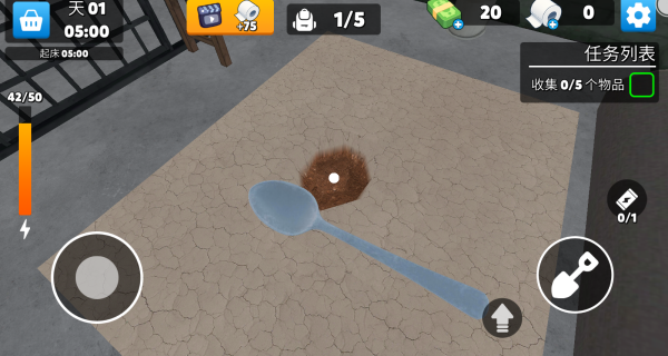 2. 借助虚拟摇杆操控角色移动至床边,点击交互以获取隐藏工具。
