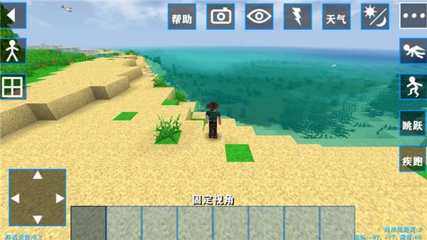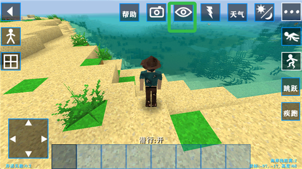 2. 当前处于第一人称视角,点击眼睛图标,就能切换到第三人称视角。