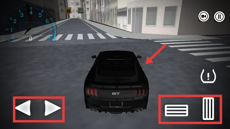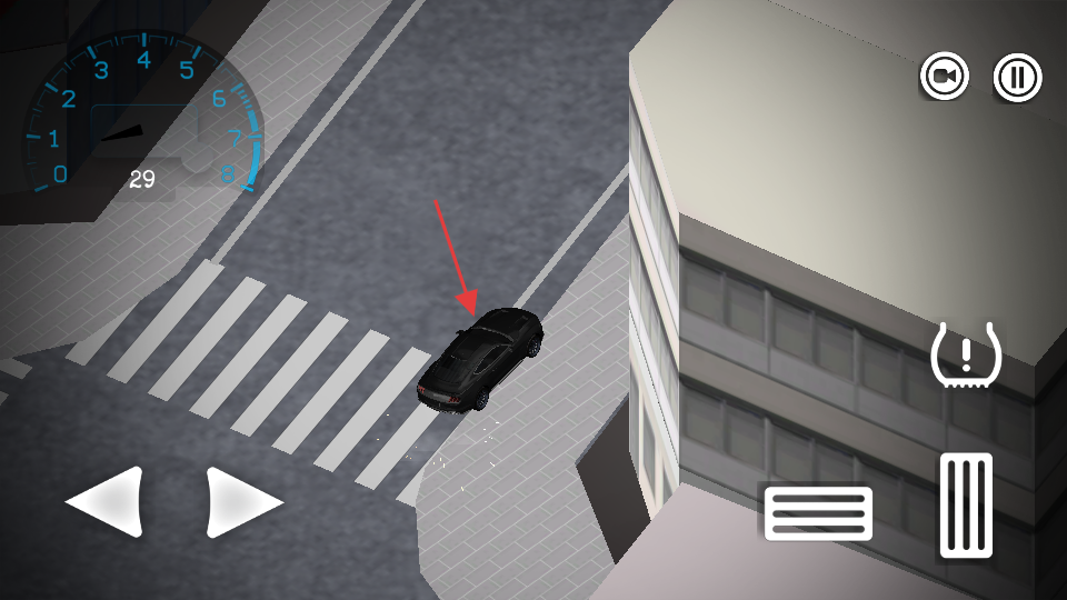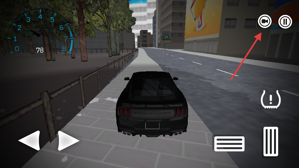 2. 在驾驶界面,通过左侧的左右箭头按钮来操控车辆转向,利用右侧按钮实现加速操作,进而驾驶跑车在城市道路上行驶。
