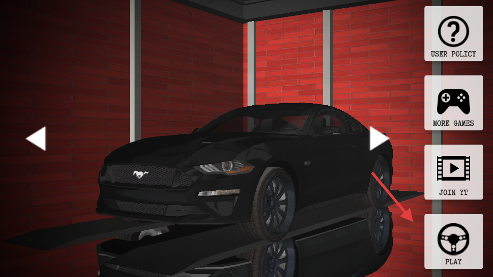 1. 开启游戏后,点击界面右侧的“PLAY”按键,随即启动黑色跑车的驾驶之旅。