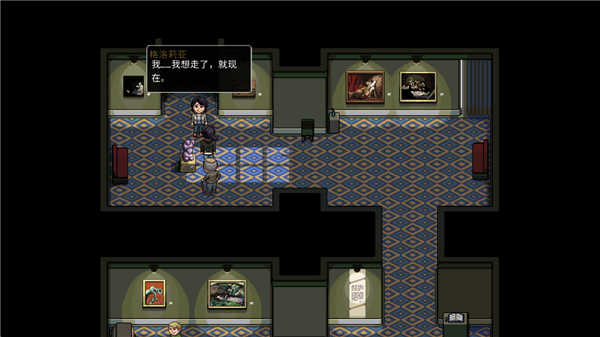 3、操控角色顺着剧情指引来到展览馆,沿着路线一直走到馆内左边的通道,却看到了意外场景,此刻你只想马上离开此地。