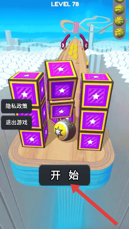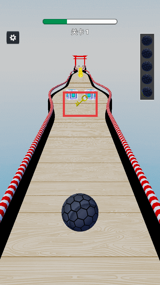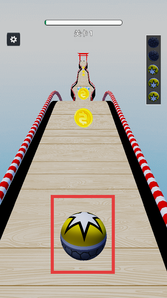 2、踏入关卡后,通过滑动屏幕来操控红框里的【滚球】向前行进,沿途收集金币,同时要留意避开障碍物。