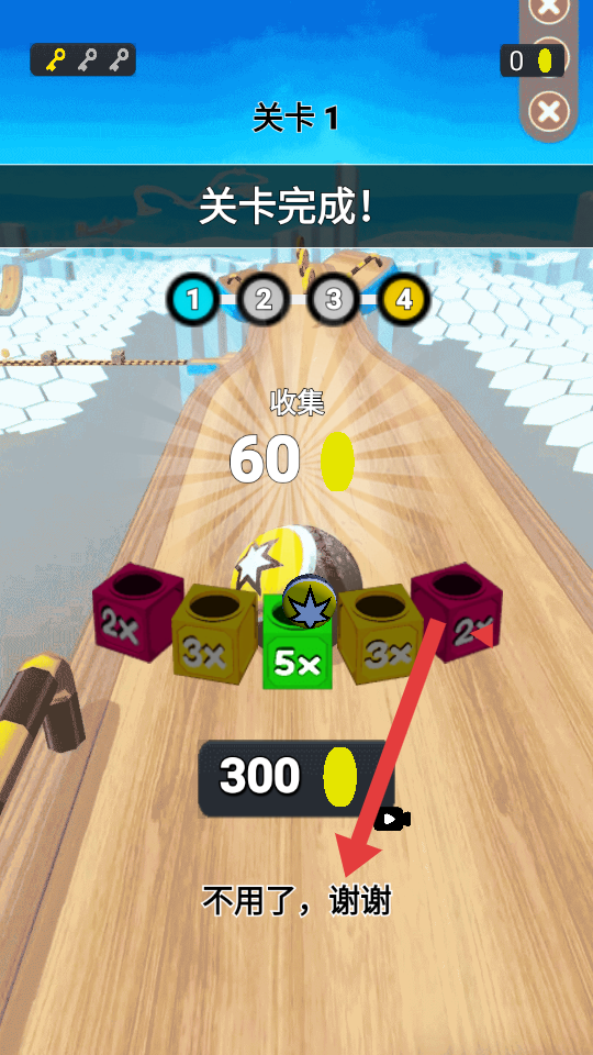4、顺利抵达终点,完成关卡。当看到【关卡完成!】的提示后,可选择是否领取奖励。若点击【不用了,谢谢】,即可结束当前操作。