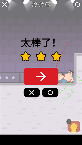 4、当成功战胜全部对手,即可收获三星评价,点击箭头按钮,就能进入下一关。