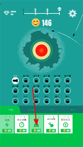 要解锁武器,需成功闯过一定数量的关卡。在关卡不断推进的过程中,星球的强度会逐渐增强,轰炸的难度也会逐步提高。而解锁新武器以及升级武器属性,会形成一种进阶循环。