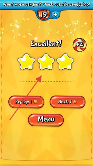 3、要通过各种方式,使青蛙吃到糖果,并且让糖果在这一过程中触碰到所有星星以完成获取。