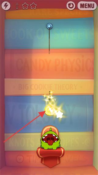 2. 在该游戏里,只需划动屏幕割断绳子,使青蛙吃到糖果,便可通关。
