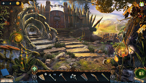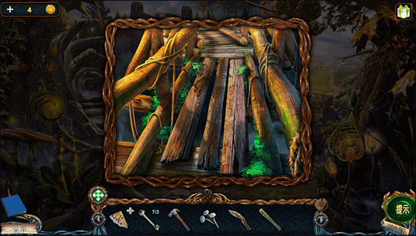 8、取出钉子、木板以及锤子,点击空缺的地方,桥便修好了。