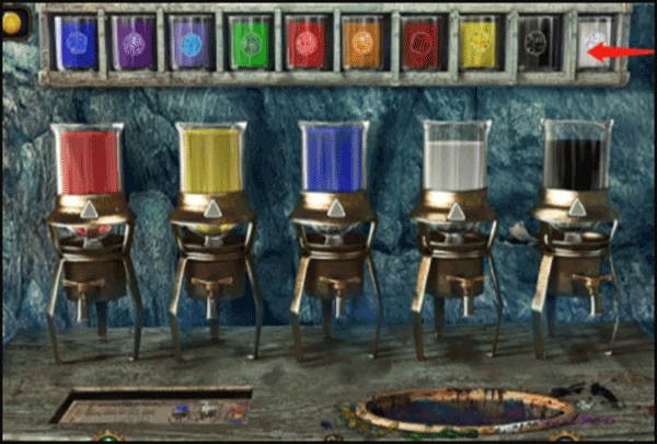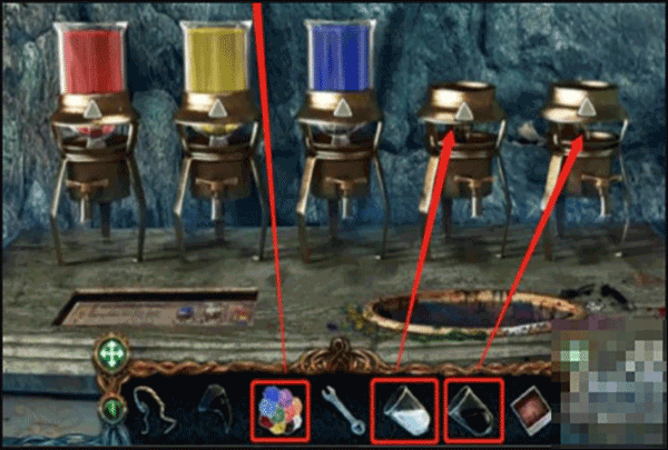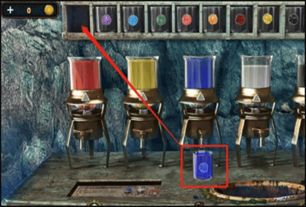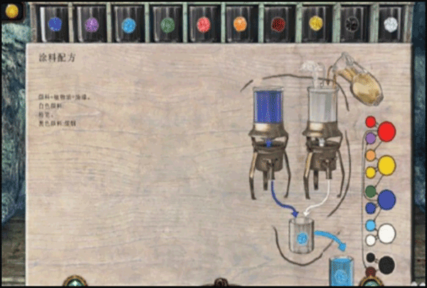 5、首个烧瓶为蓝色,鉴于蓝色已然存在,仅需在蓝色颜料瓶下方转动按钮两次即可。完成配色后,把烧瓶放回原处,接着更换另一个烧瓶。