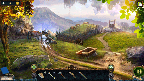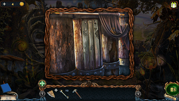 6、先后发现藏宝图、锤子(由2个部件构成,需进行组合)、棒槌、日记等物品。待锤子组装完成后,用其撬开木板,从而获得刀子、钉子、木板等物品。