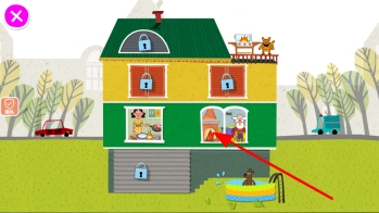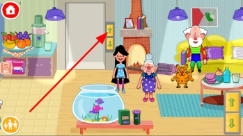 3、注意场景里的功能按钮等元素,比如图中的上下箭头按钮,借助这些功能按钮在不同区域间穿梭,探索城堡更多内容。
