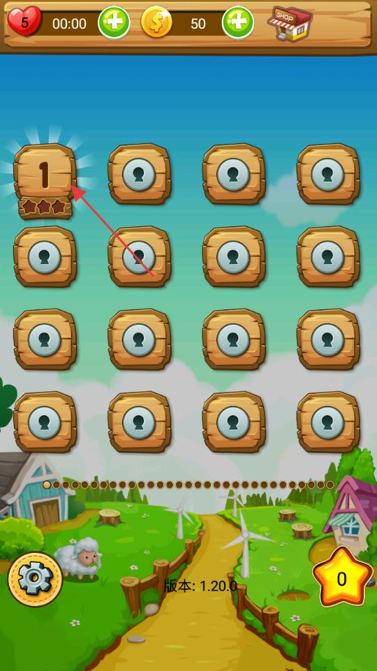2、于关卡选择界面处,寻觅标有1且带有无锁标识的关卡方块,点击此方块,待对应关卡内容加载完毕,即可进入第一关的消消乐挑战场景。