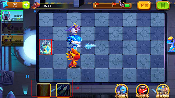 5、我们的能量站能够产出能力石,可以冷却更新小恐龙和技能,如果敌人过多,可以使用技能来消灭他们;