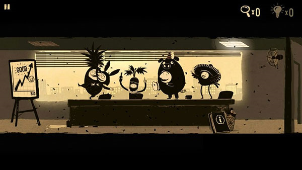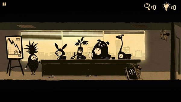 4、拿鸵鸟头把上方损坏的灯盖打开,接着用之前获取的灯泡进行修复。前往第一个场景,捕捉一只苍蝇。再回到第二个场景,点击风扇两下,再点击空中的风一次,这样就能把苍蝇放出来,之后再次点击风扇,苍蝇就会被吹到女主管那边。女主管举枪扫射时,会掉落笔和叶子。返回第一个场景,用棒棒糖和叶子制作一份爱心咖啡送给女主管。然后趁此机会修改牌子上的业绩,就能顺利通关。