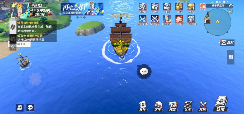 全新活动「战至巅峰」、「竞技送雷利」重磅来袭!参与活动,就能免费获得传奇伙伴,快来与其他船长一同对战吧!