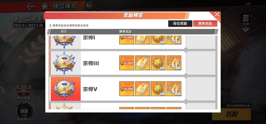 5. 在竞技场里,按照我的计算,如今我每个月都能打到宗师三。达到宗师三可以获得4张,赛季更新的时候还会再给4张,这样每个月就能得到8张高招。